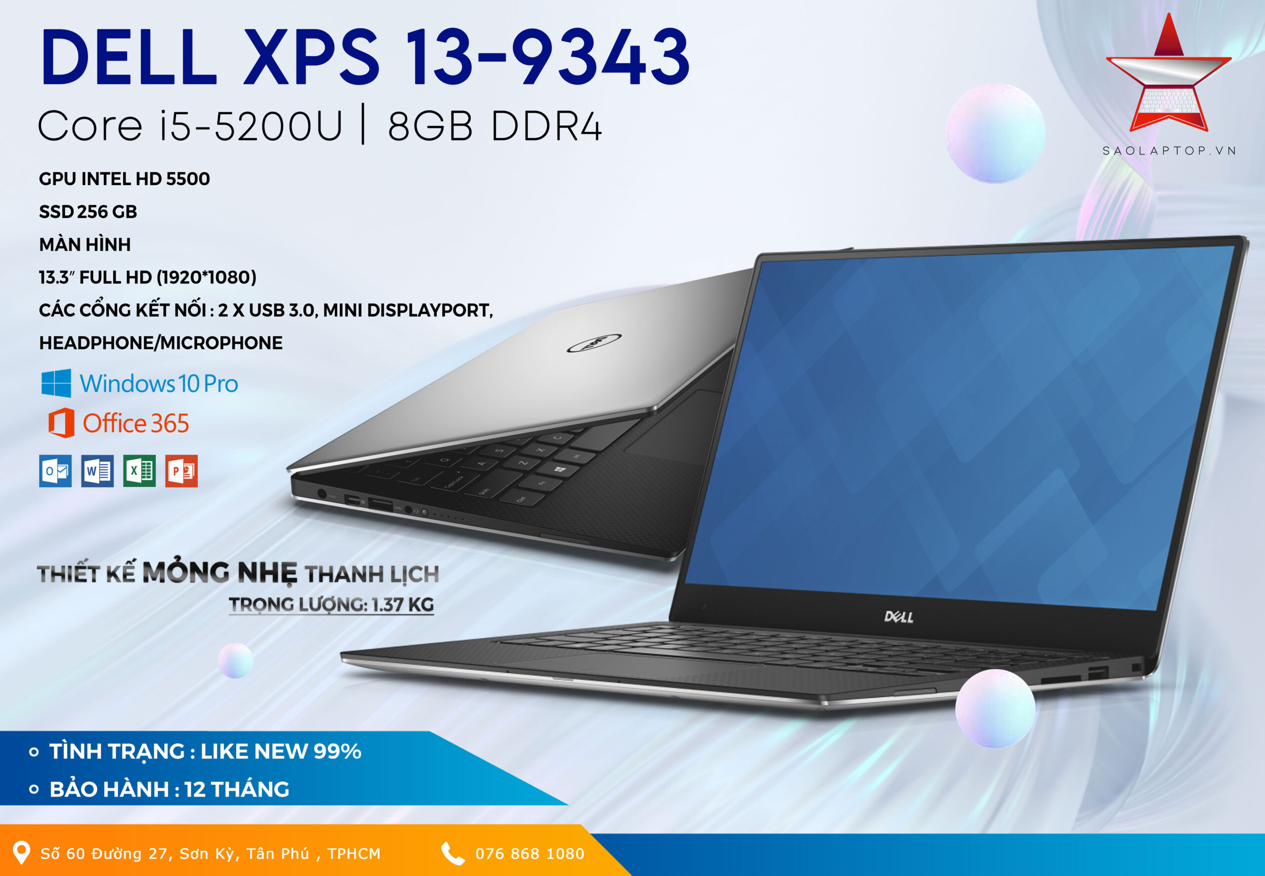 DELL XPS 13-9343 là phiên bản mới nhất trong dòng máy tính giải trí di động XPS được Dell giới thiệu lần đầu tiên tại triển lãm CES 2015 vừa qua. Sản phẩm thu hút sự quan tâm của giới công nghệ và truyền thông với thiết kế hiện đại, cấu hình phần cứng nền tảng Broadwell với thời lượng dùng pin lên đến 7 giờ liên tục và đặc biệt là thiết kế viền màn hình siêu mỏng chỉ 5,2mm.