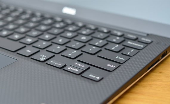 XPS 13 trang bị bàn phím chicklet dạng full size và có thêm LED nền, tiện dụng hơn khi làm việc trong môi trường thiếu sáng. Trừ nhóm phím chức năng (Fn) khá nhỏ thì những phím nhấn còn lại kích lớn, nhấn êm, độ đàn hồi đủ tốt để lướt nhanh khi gõ văn bản. Khoảng cách giữa các phím rộng, hành trình phím vừa phải (1,3mm) giúp thao tác thoải mái mà không sợ nhấn nhầm. Dù vậy, điểm bất tiện của bàn phím là dễ bám dấu tay.